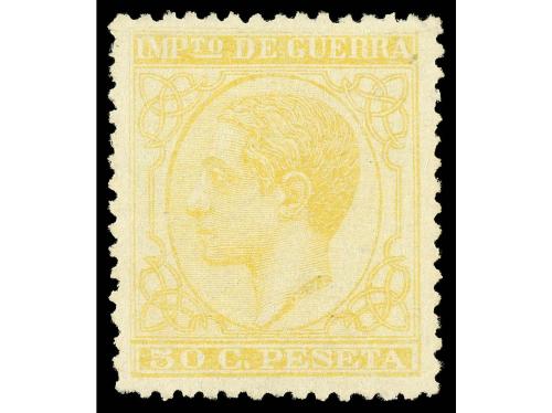 (*) ESPAÑA. Ed. 189. 50 cts. amarillo. Excelente centraje, ínfimo punto claro en el margen superior. MAGNÍFICO. Cat. 1.500€.