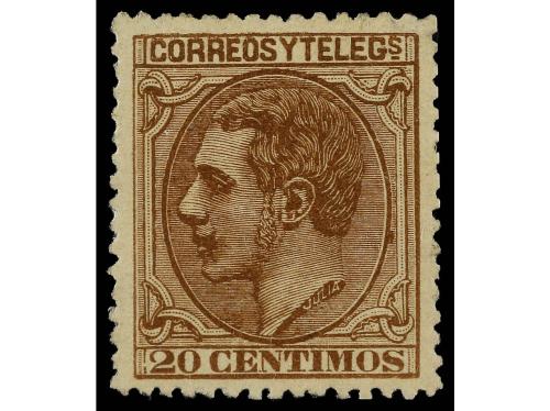 (*) ESPAÑA. Ed. 203. 20 cts. castaño. Centraje perfecto. LUJO.