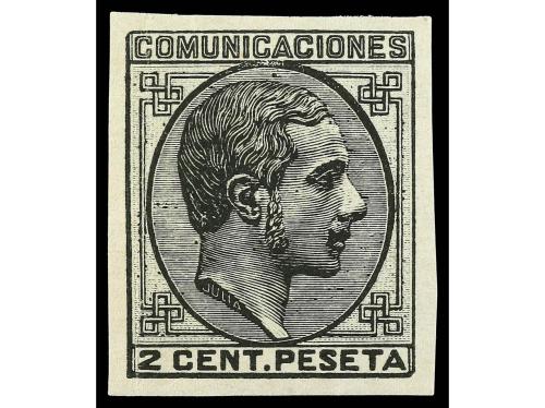 * ESPAÑA. Ed. 190es. 2 cents. negro ERROR DE COLOR sin dentar. Leve pliegue vertical. Cat. 108€.