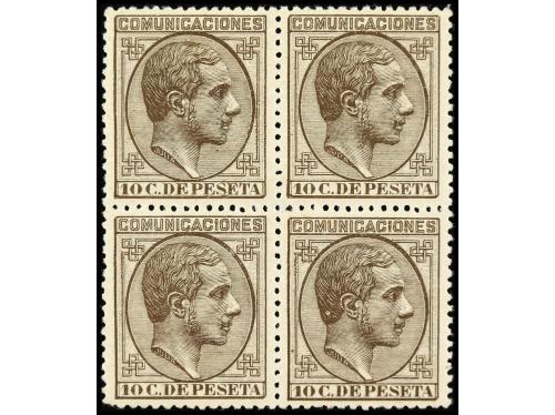 ** ESPAÑA. Ed. 192. 10 cts. castaño. Bloque de cuatro. LUJO.