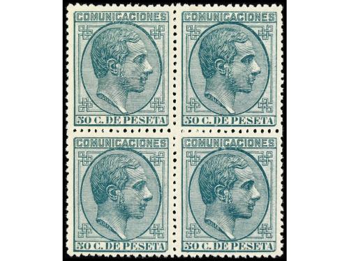 ** ESPAÑA. Ed. 196. 50 cts. verde. Bloque de cuatro. Centrajes perfectos. LUJO. Cat. 525€.