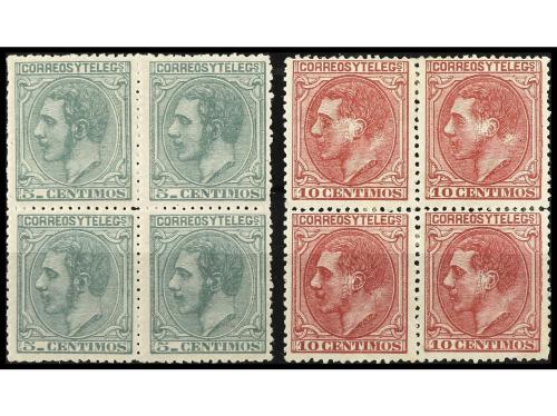 **/* ESPAÑA. Ed. 201, 202. 5 cts. verde y 10 cts. rosa. Bloques de cuatro. PRECIOSOS.