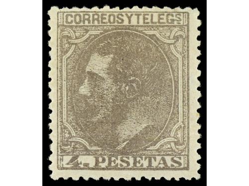 * ESPAÑA. Ed. 208. 4 pesetas gris. Muy bien centrado. Cert. EXFIMA. Cat. 1.200€.