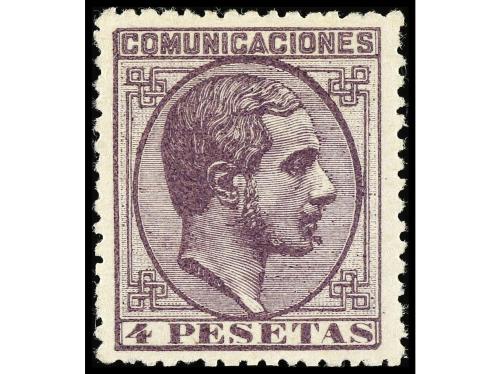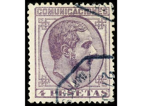* ESPAÑA. Ed. 198. 4 pesetas violeta. Muy buen ejemplar. Cert. GRAUS . Cat. 350€.