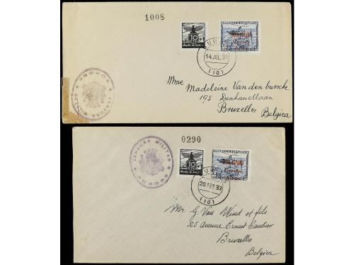 ESPAÑA E. LOCALES PATRIOTICAS: BURGOS. Ed. 72. 1937. Dos cartas circuladas a BÉLGICA con sello de 2 pts. azul tipos I y II. Al dorso llegada.