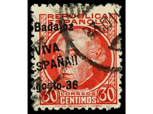 ° ESPAÑA E. LOCALES PATRIOTICAS: BADAJOZ. Ed. 1. 30 céntimos rojo. RARO.