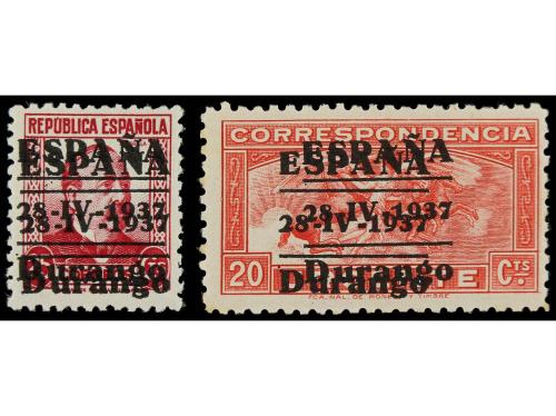 ** ESPAÑA E. LOCALES PATRIOTICAS: DURANGO. Ed. 8hh, 16hh. 25 c. carmín y 20 c. urgente, DOBLE HABILITACIÓN.