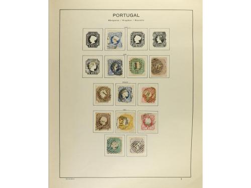 LOTES y COLECCIONES. PORTUGAL y COLONIAS. Colección montada en álbum. Período 1853-1900, en usado. Después sellos en nuevo mayoría fijasellos hasta 1973. Incluye Colonias, Aéreos, Tasas, Hojas bloque, Franquicia, etc. En general buena calidad, aunque hay sellos con manchas del tiempo (some stamps with age spots). Altísimo valor catálogo. Muy buen lote. Foto en web. (Ex-17).