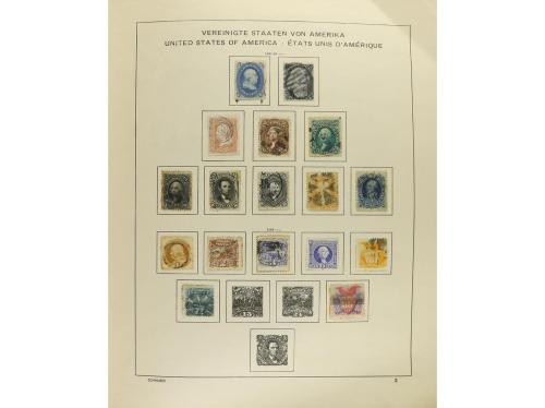 LOTES y COLECCIONES. ESTADOS UNIDOS y ÁREA. Colección montada en álbum. Período 1851-1900 mayoría usado. Período 1900-1980, mayoría en nuevo. Incluye Aéreos, Tasas, Oficial, etc. Algunos sellos leves manchas del tiempo (some items age stains). Alto valor catálogo. Buen lote. Foto en web. (Ex-6).