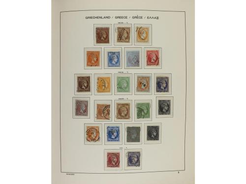 LOTES y COLECCIONES. GRECIA. Colección montada en álbum schaubeck, desde 1860 a 1985. Hasta 1920 en usado, luego en nuevo con fijasellos hasta 1910 aprox. y resto sin fijasellos salvo excepción. En general, buena calidad. No hay sellos o series de muy alto valor, pero sí, el conjunto tiene gran valor catálogo. Muy buen lote. Foto en web (ex -7).