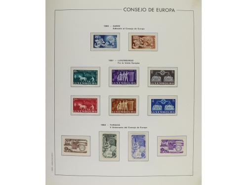 LOTES y COLECCIONES. TEMA EUROPA. Colección montada en 15 álbumes, período 1950-2023. Incluye material relativo a europeísmo. Colección completa. Sellos y series sin fijasellos. Incluye carnets, minihojas (no Liechtenstein 1960), enteros postales, algún sobre primer día, etc. Los últimos años de esta temática, son raros de encontrar. Muy alto valor catálogo. Muy buen lote. Foto en web (ex-3).