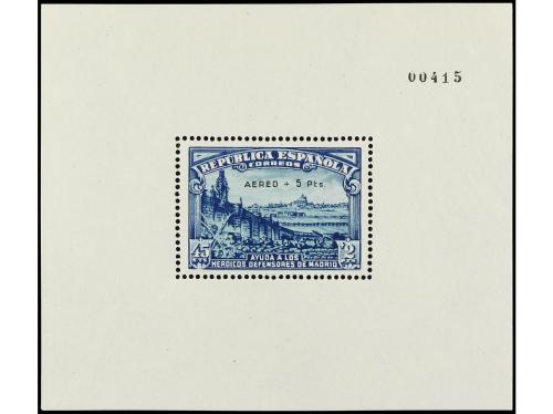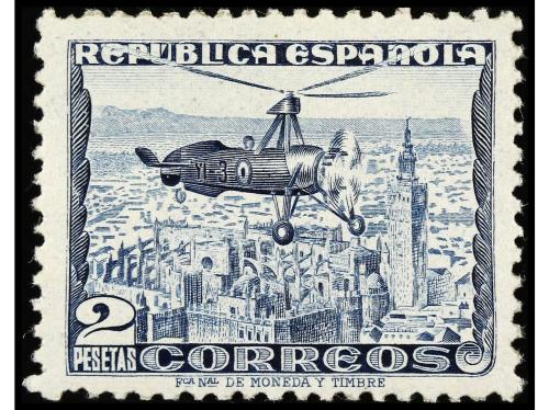 ** ESPAÑA. Ed. 760. HB. Áereo + 5 pts. azul. LUJO. MUY RARA sin fijasellos y en esta excepcional calidad. Cert. CEM. Cat. 6.500€.