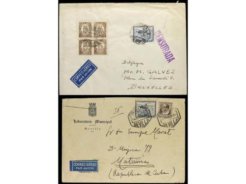 ESPAÑA. Ed. 689, 769. 1935-38. Tres cartas circuladas con sello de 2 pts. del Autogiro.