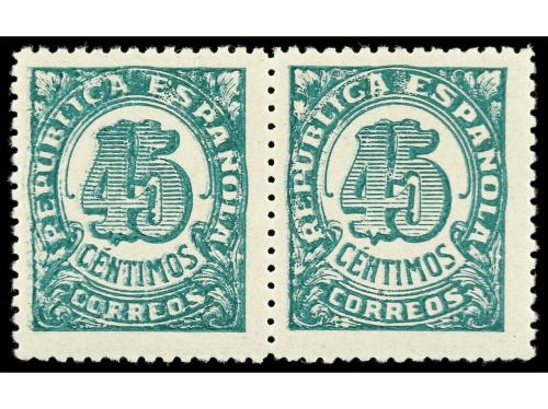 ** ESPAÑA. Ed. NE 31. NO EXPENDIDO. 45 cts. verde. Pareja, un sello DOBLE IMPRESIÓN. No reseñado. RARO. Cert. CEM.