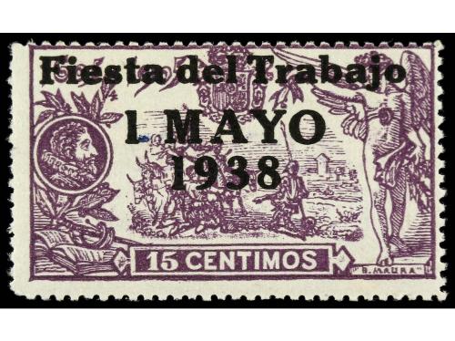 ** ESPAÑA. Ed. 762hp. 1 pta. s. 15 cts. violeta. Sin habilitación "1 PESETA". Leves sombras del tiempo.