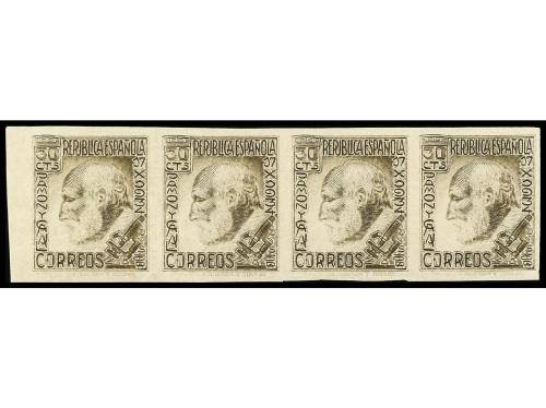 ** ESPAÑA. Ed. 680s. 30 cts. castaño. Tira de cuatro SIN DENTAR. LUJO. Cat. 200€.