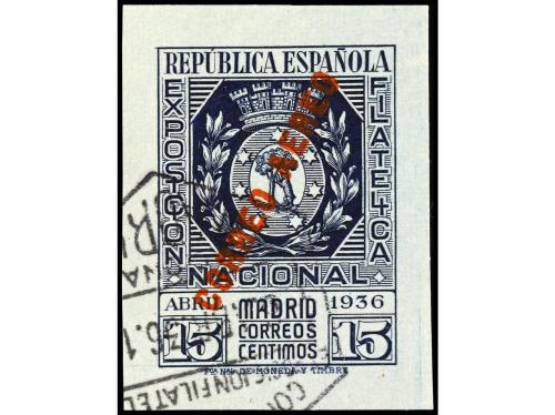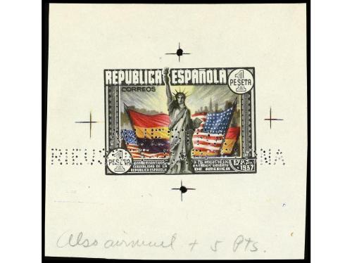 (*) ESPAÑA. Ed. 759, 757s(2). Aéreo + 5 pts. en pareja SIN DENTAR. Pruebas de habilitación sobre sellos tipos 46 y 47. Al dorso impresión del 757.