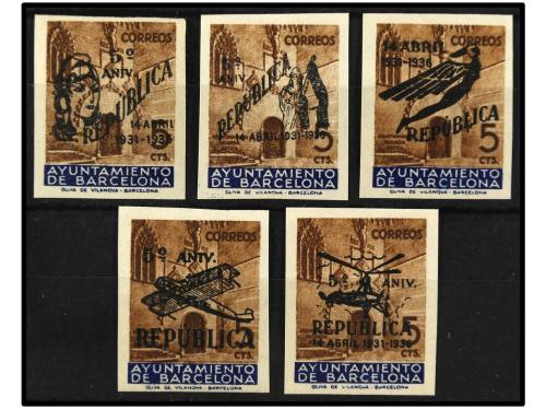 ** ESPAÑA: AYUNTAMIENTO DE BARCELONA. Ed. NE 9/16hi. NO EMITIDOS. Serie completa, habilitación INVERTIDA.Cat. 430.