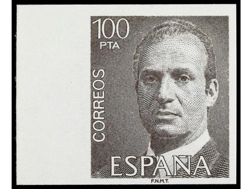 ** ESPAÑA. Ed. 2605s. JUAN CARLOS I. 100 pts. castaño SIN DENTAR, borde de hoja. LUJO. Cert. GRAUS.