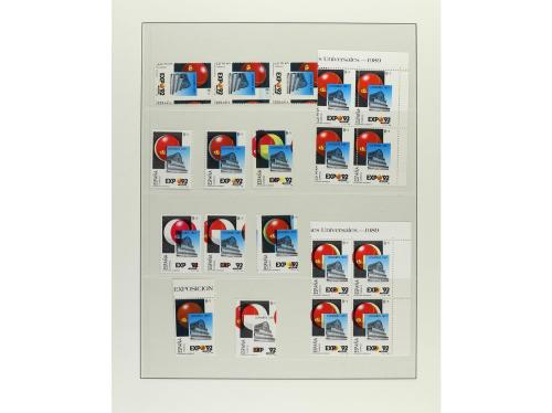 ** ESPAÑA. Ed. 2990. EXPO'92. 8 + 5 pts. página de álbum dentados y colores desplazados. Cuatro cert. GRAUS.