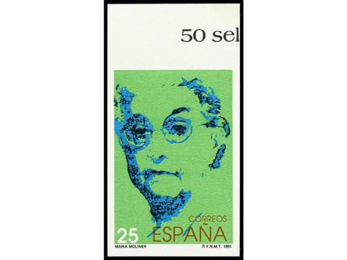 ** ESPAÑA. Ed. 3099s. MARIA MOLINER. 25 pts. multicolor SIN DENTAR borde superior de hoja. MUY RARO y de LUJO. Cert. GRAUS.