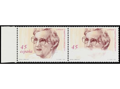 ** ESPAÑA. Ed. 3241ip. MARIA ZAMBRANO. 45 pts. lila y rosa. Pareja, un sello IMPORTANTE DEFECTO DE IMPRESIÓN.