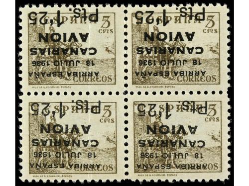 **/* ESPAÑA: CANARIAS. Ed. 22hi. 1,25 pts. s. 5 c., bloque de 4, HABILITACIÓN INVERTIDA. Dos sellos leve pliegue.