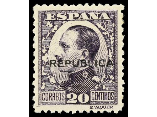 * ESPAÑA E. LOCALES REPUBLICANAS: ALMERIA. Ed. 6hcc. 20 céntimos violeta, habilitación en negro. CAMBIO DE COLOR. Cat. 150€.