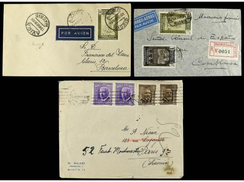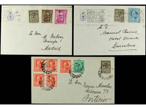 ESPAÑA. Ed. 695, 697, 698, 699, 701. 1936. Tres cartas circuladas desde BARCELONA con diversos sellos de la serie y sellos del Ayuntamiento de Barcelona.
