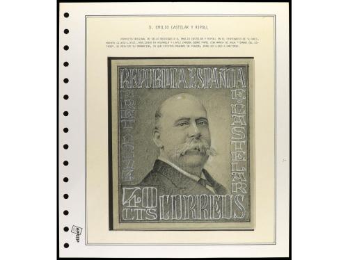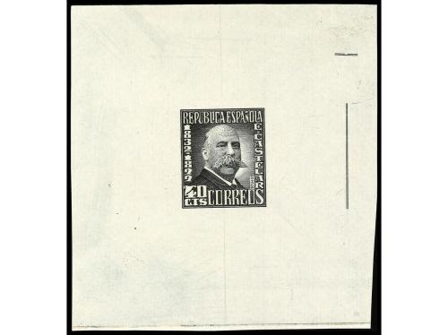 ESPAÑA. 1932. E. CASTELAR. PROYECTO DE PUNZÓN NO ADOPTADO. 40 cts. negro (Gálvez 3140) sobre papel estucado.