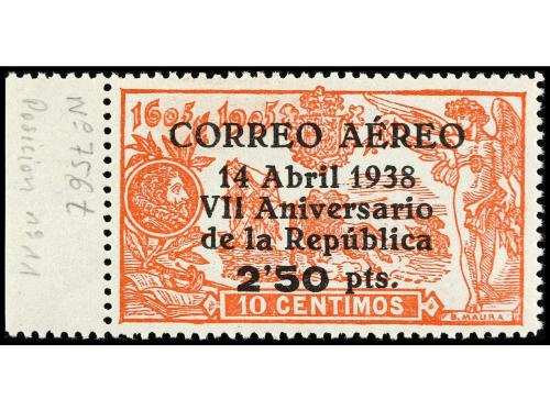 ** ESPAÑA. Ed. 756. 2,50 pts. sobre 10 cts. rojo. Borde de hoja. LUJO. Presenta la variedad "5" aplastado (Ed. 756t). RARO y más en esta calidad. Cat. +250€.
