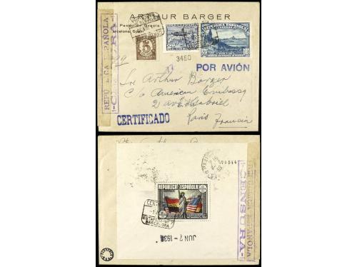 ESPAÑA. Ed. 700, 701. 1936. Dos cartas con preciosos franqueos dirigidos a Barcelona y Nueva York, al dorso llegadas.
