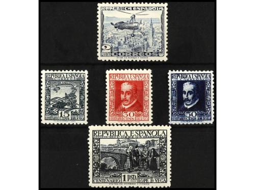 ESPAÑA. Ed. 727/28, 681, 687. 1936. MADRID a VALENCIA. Serie completa del correo ordinario mas sellos de 5 cts. castaño y 30 cts. rojo.