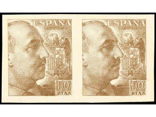 * ESPAÑA. Ed. 935ps (2). 10 pts. castaño. Papel cartulina SIN DENTAR. RARO. Cat. 340€.