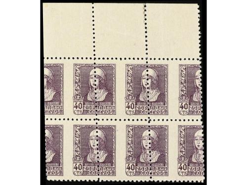 ** ESPAÑA. Ed. 858. 40 cts. violeta. Bloque de seis DENTADO DESPLAZADO y en diagonal. ESPECTACULAR y RARA.