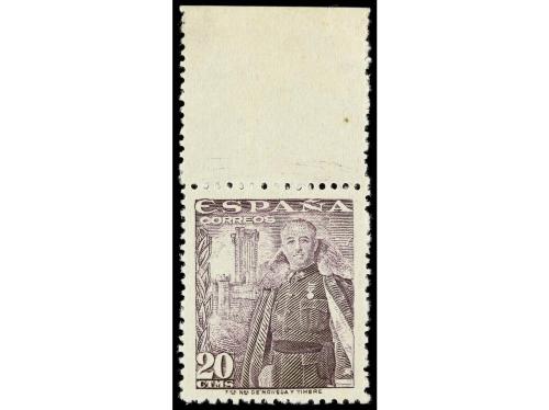 ** ESPAÑA. Ed. NE 60. 20 cts. violeta. NO EXPENDIDO. Borde de hoja LUJO. Muy raro en esta expecional calidad. Cert. CEM y GRAUS (alta calidad).