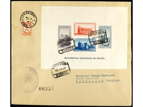 ESPAÑA. Ed. 862/63. 1938. BURGOS a BRUSELAS. HB. dentadas en dos cartas circuladas, al dorso llegada. RARÍSIMA.