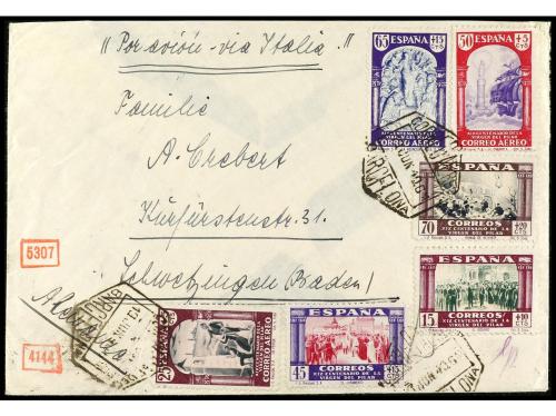 ESPAÑA. Ed. 948/51, 923 (4), 932, 953 (4). 1942. SANTA CRUZ DE TENERIFE a SUIZA. Serie completa, espectacular franqueo. Al dorso tránsito y llegada. RARA.