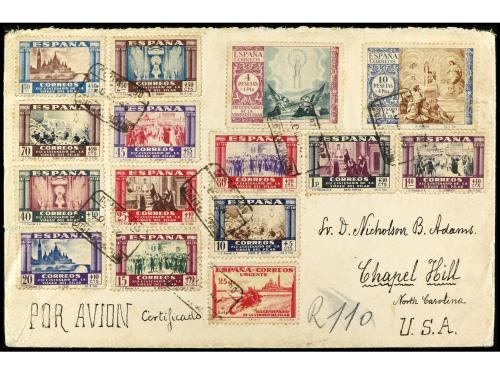 ESPAÑA. Ed. 889/903. 1940. BARCELONA a U.S.A. Serie completa en carta circulada, al dorso llegada.