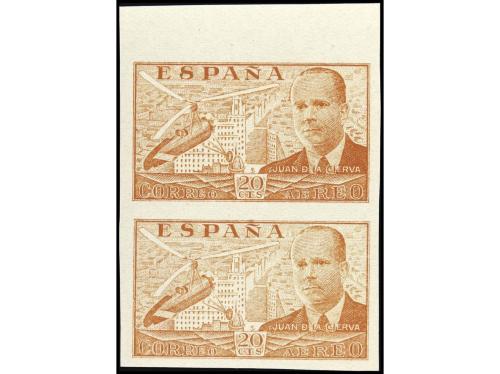 ** ESPAÑA. Ed. 880ccs (2). 20 cts. ocre COLOR CAMBIADO SIN DENTAR en pareja vertical. Cat. +760€.