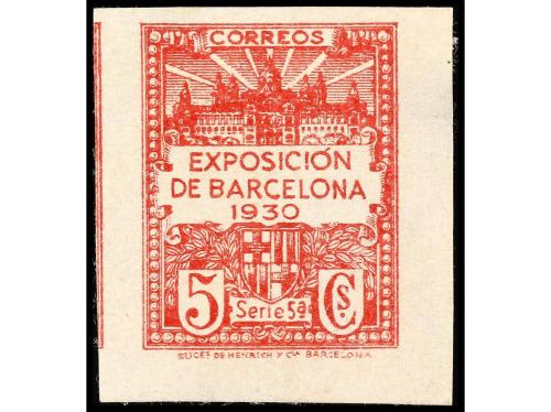 (*) ESPAÑA: AYUNTAMIENTO DE BARCELONA. Ed. 5. 5 cts. rojo. CAMBIO DE COLOR SIN DENTAR. No reseñado, primer ejemplar que hemos visto, leve adelgazamiento sin importancia.