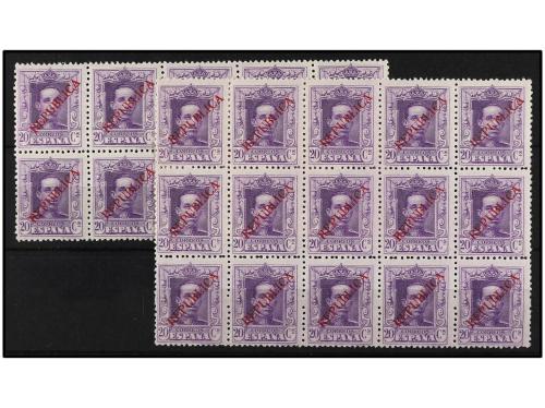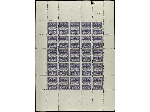 ** ESPAÑA E. LOCALES PATRIOTICAS: BARCELONA. Ed. NE 1. NO EXPENDIDOS. 20 cts. lila. 25 sellos en dos bloques. RARO. Cat. 1.750€.