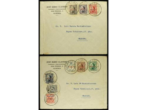 ESPAÑA E. LOCALES REPUBLICANAS: ALMERIA. Ed. 1/8. 1931 (22 abril). ALMERÍA a GRANADA, serie completa en dos sobres circulados, al dorso llegada. Serie MUY RARA en carta circulada.