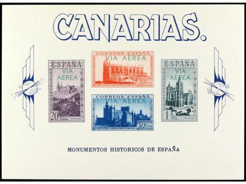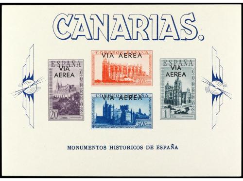 ** ESPAÑA: CANARIAS. Ed. 63. HB SIN DENTAR con HABILITACIÓN EN ROJO. Tirada sólo de 200 ejemplares y mayoría sin goma. RARA y de LUJO. Cat. +750€.