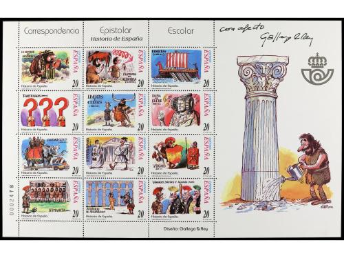 ** ESPAÑA. Ed. 3732/55. HISTORIA DE ESPAÑA. Juego de dos minipliegos con firma autógrafa del dibujate CALLEGO Y REY.