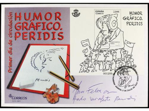 ESPAÑA. Ed. 4978. HUMOR GRÁFICO. HB. en sobre con mat. conmemorativo con la firma y dedicatoria manuscrita del dibujante PERIDIS.