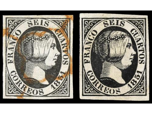 º ESPAÑA. Ed. 1A (2). 6 cuartos negro, p. II 23-24. Pareja, mat. A de origen desconocido.