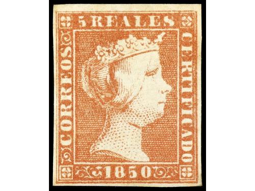 * ESPAÑA. Ed. 3. 5 reales rojo. Color muy fresco, conservando toda su goma original. MAGNÍFICO EJEMPLAR. LUJO. Cert. COMEX. Cat. 3.400€.