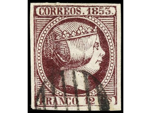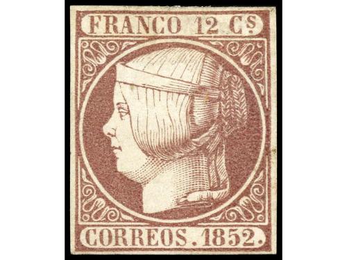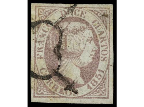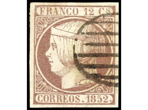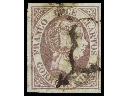 º ESPAÑA. Ed. 7. 12 cuartos lila. Grandes márgenes, magnífico ejemplar. Cat. 250€.