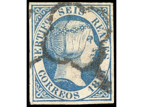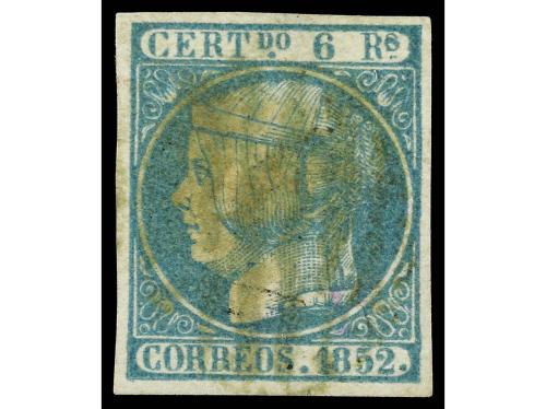 ° ESPAÑA. Ed. 16ita. 6 reales azul verdoso. "S" de "Rs" deformada, tiene la forma de un 8. RARO.